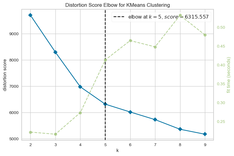 This line displays the elbow plot generated by the KElbowVisualizer. The elbow plot shows the within-cluster sum of squares as a function of the number of clusters (k). The optimal number of clusters is usually where the curve starts to level off, which looks like an elbow. By examining the elbow plot, one can determine the optimal number of clusters for the dataset X.