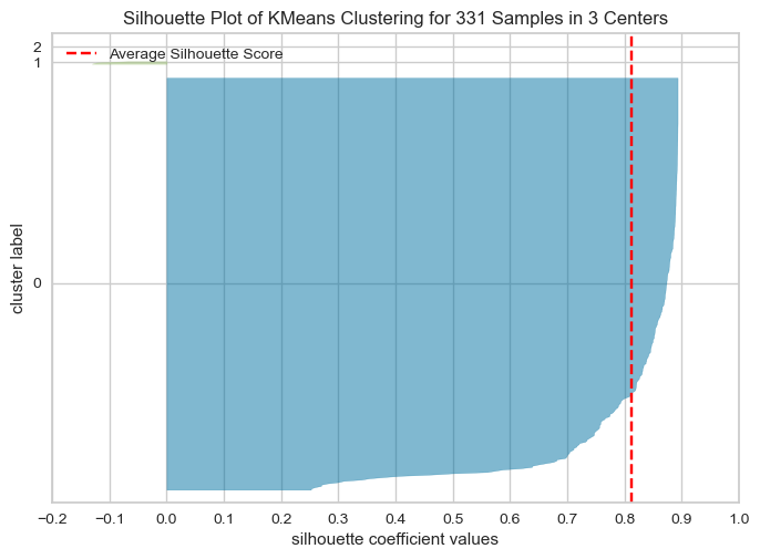 From the elbow method and silhouette score, we see in elbow method the optimal number of clusters are 2, whereas in silhouette method, silhouette score for k=2 is 88 % , k=4 is 79.99 and k=3 is 81