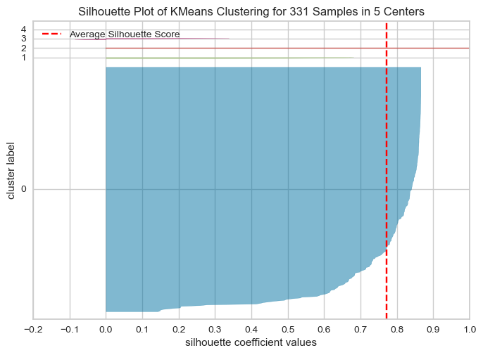 The Silhouette Plot shows how well-separated the clusters are, based on the Silhouette Coefficient. A high Silhouette Coefficient indicates that the data point is well-matched to its own cluster and poorly-matched to neighboring clusters. The vertical line in the plot indicates the average Silhouette Coefficient for all data points in the cluster. By looking at the Silhouette Plots for different n_clusters values, we can determine the optimal number of clusters for the data.