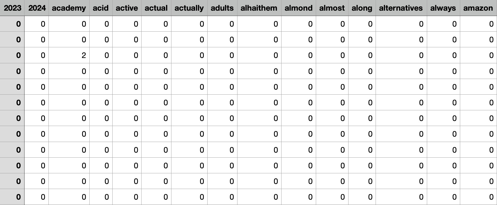 The dataset include numeric values of the count vectorized labels