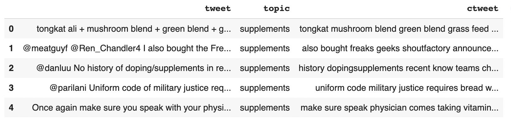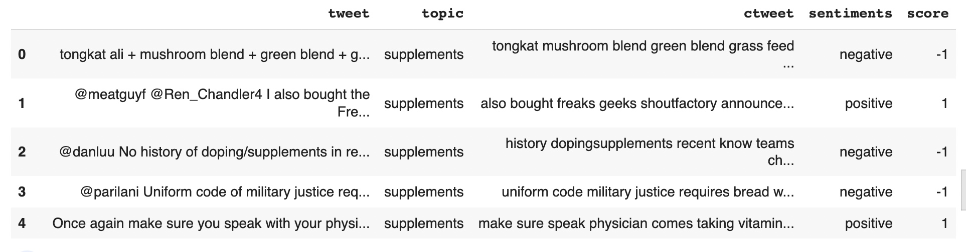 The data distribution for the given four topics and the sentiments associated with the tweetsfor all the topics extracted